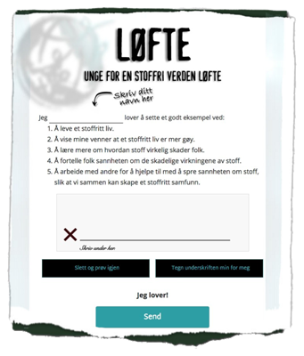 Skriv under på løftet og vis veien til et stoffritt liv. Arbeid sammen med andre for å hjelpe til med å spre sannheten om stoff.