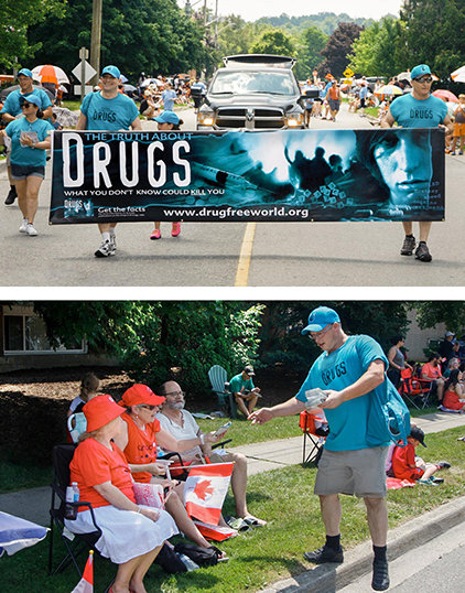 Derfor gikk 15 DFW-frivillige med i Cambridge Canada-dag-opptoget med et banner som forkynte: «Sannheten om stoff: Hva du ikke vet kunne drepe deg.» De marsjerte sammen med andre humanitære organisasjoner og familier gjennom Cambridges gater. Under opptoget delte de ut Sannheten om stoff-hefter til mer enn 7000 deltakere, og spesielt til unge. Etter opptoget hadde DFW en bod med flere materialer for innbyggere og et oppblåsbart hus og grill for familier til passende feiring av dagen.