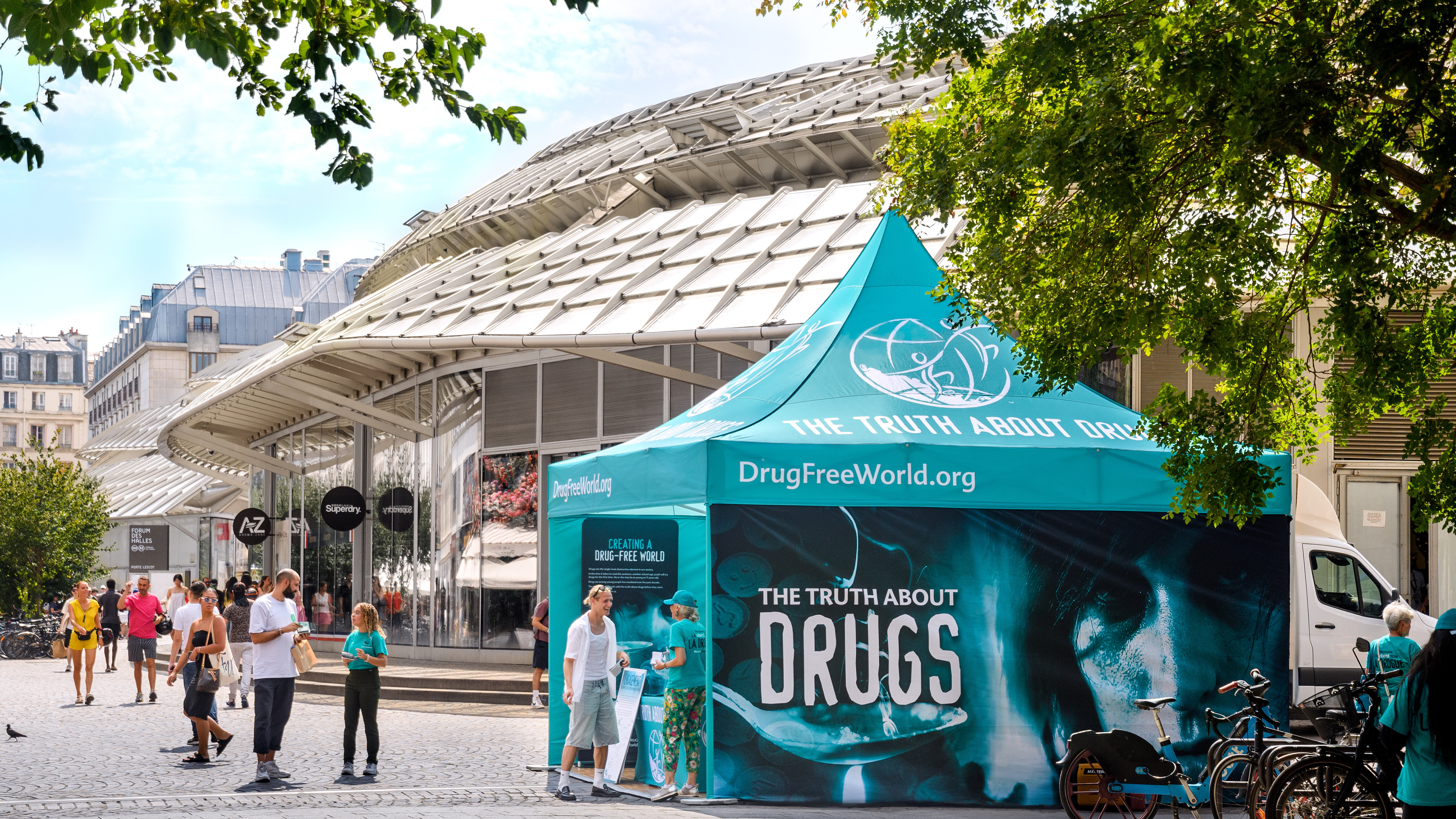 Internasjonale byer i alle verdenshjørner har nylig sett en lysende turkis topp som skiller seg ut midt i gatene deres, og bærer Sannheten om Stoff-budskapet. Stiftelsen for en Stoffri verden har nye mobile utstillinger som drar overalt for å opplyse folk om farene ved stoff og forhindre at barn blir ofre for avhengighet.